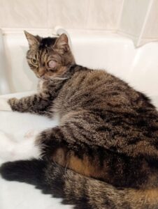 Jej opiekunką jest 92‑letnia, samotna osoba, która przez wiele lat troskliwie się nią zajmowała. Niestety z powodu wieku i pogarszającego się stanu zdrowia nie ma już siły, aby dalej sprawować nad nią opiekę. Z całym bólem serca podjęta została decyzja o konieczności oddania kotki – nie ma też możliwości przekazania jej pod opiekę rodziny ani znajomych.