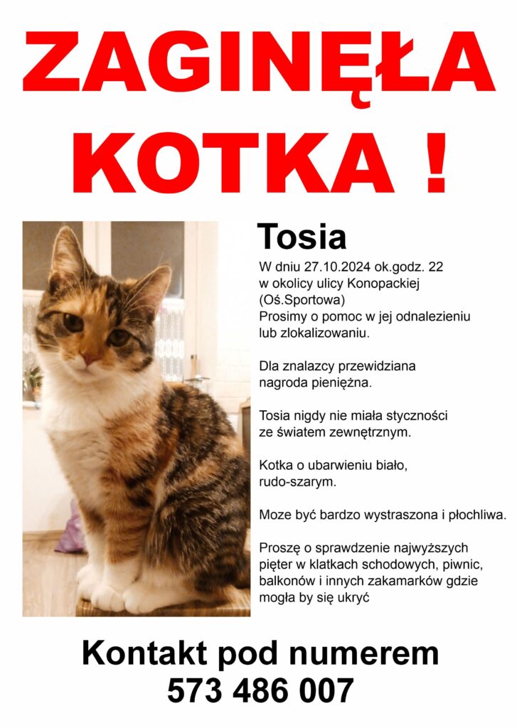 ZAGINĘŁA KOTKA DNIA 27.10.2024